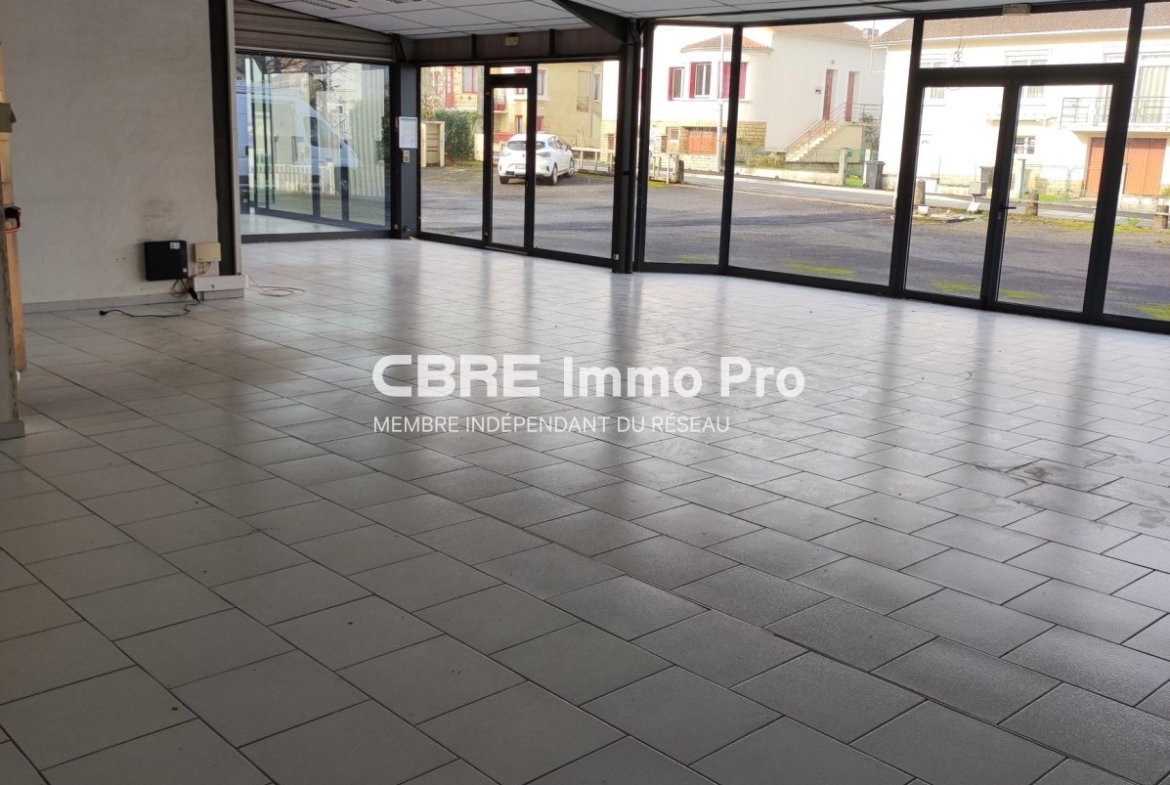 Comprenant un grand espace d’accueil, deux bureaux et un entrepôt avec accès arrière, ce bien lumineux grâce à ses nombreuses vitres convient parfaitement à toute activité artisanale ou commerciale.