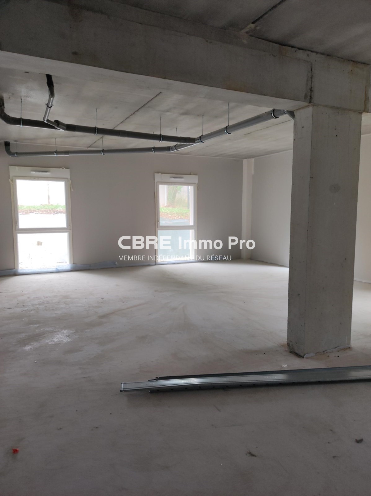 Local livré avec chappe liquide avec isolation, murs périphériques plaqués et isolés, volets roulants installés mais non raccordés, fourreaux des fluides en attentes.