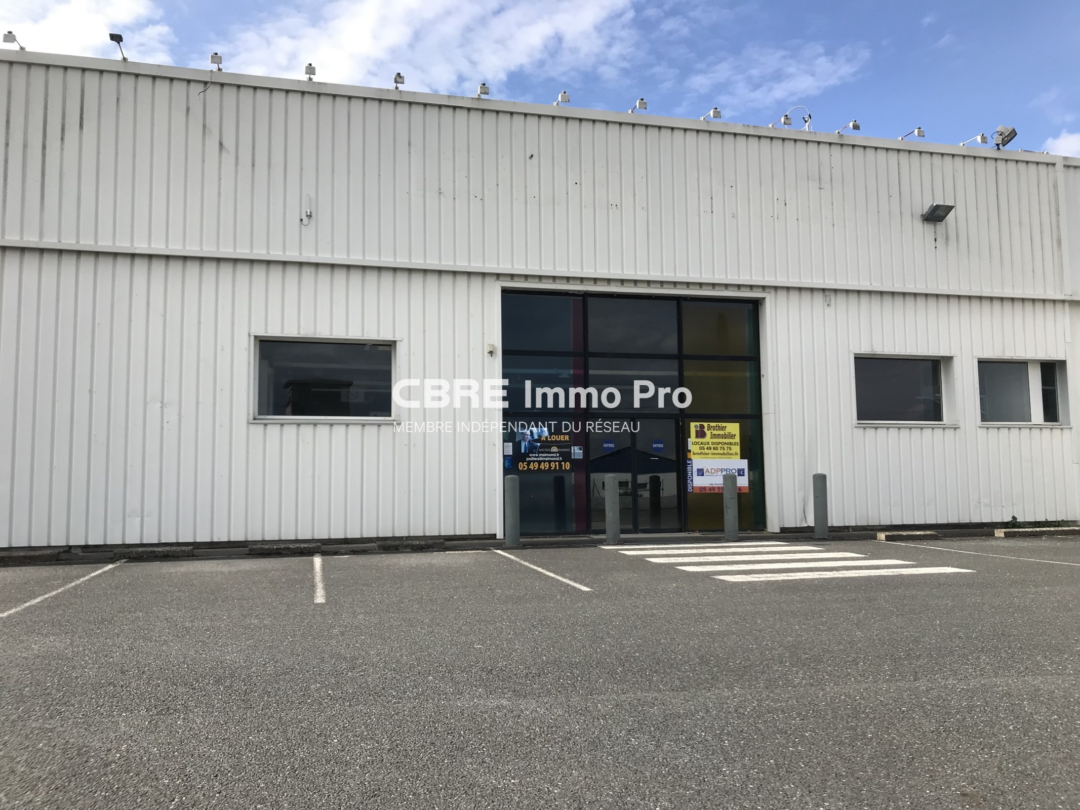 JARDRES / CHAUVIGNY, à louer un local commercial d’une surface de 1 240 m². Parkings communs à tous les locataires, en façade du local. Disponible immédiatement.