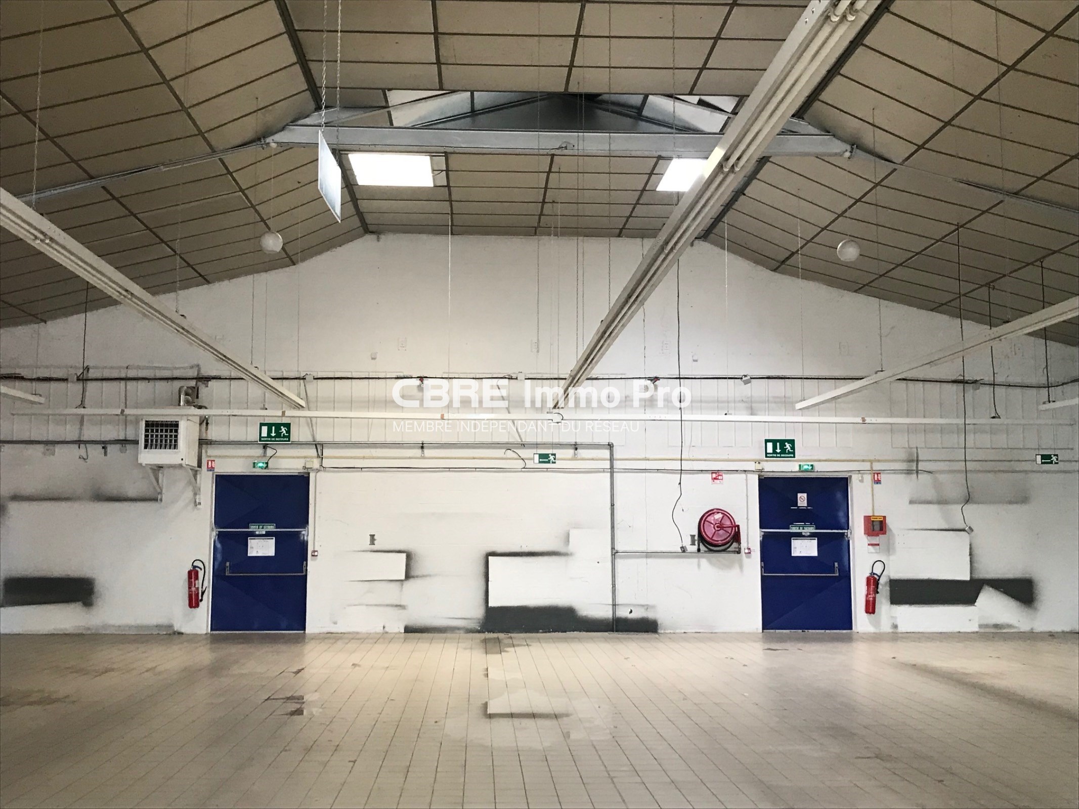 Partie espace de vente aménagée (carrelage au sol, bureaux et local technique, RIA).