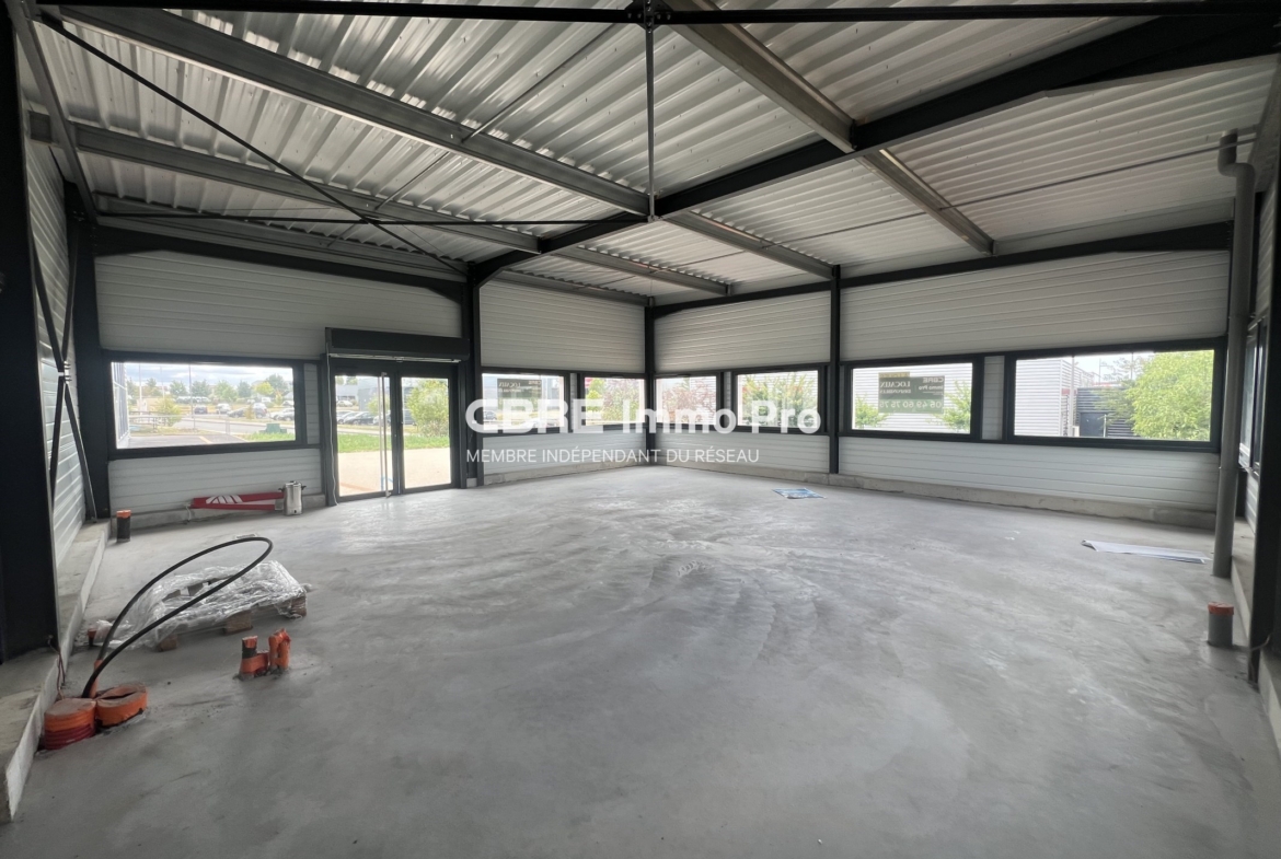 Situé dans le secteur dynamique de l’aéroport de Poitiers, ce local commercial de 100 m² environ est spécialement adapté pour accueillir une activité de restauration. Il bénéficie d’une visibilité exceptionnelle depuis la rocade, garantissant un flux de clientèle constant. Son atout majeur : une superbe terrasse privative d’environ 100 m², doublant votre capacité d’accueil et offrant un cadre privilégié à vos futurs clients. Livré brut de béton, l’espace vous laisse une liberté totale pour créer un concept et un aménagement sur mesure. Des parkings partagés facilitent le stationnement. Disponible immédiatement pour concrétiser votre projet.