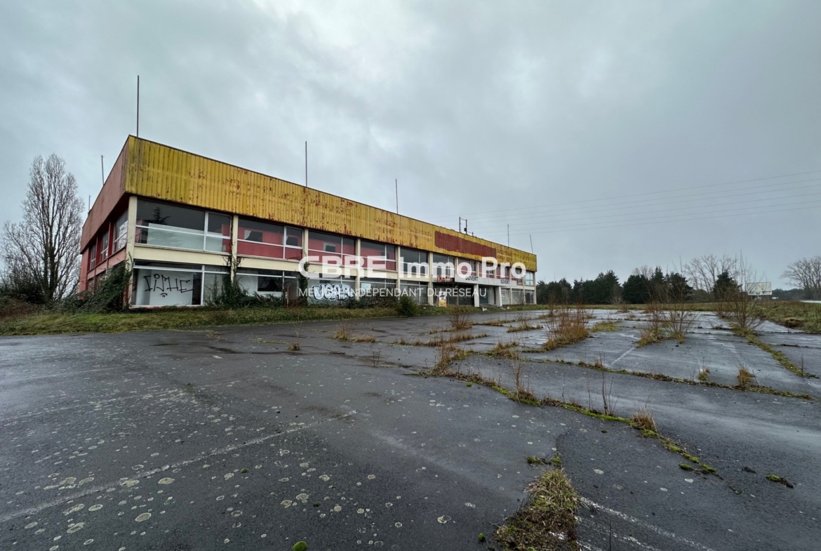 DISSAY, en bordure de la RD910 (axe POITIERS / CHATELLERAULT), très bonne visibilité, à vendre bâtiment commercial d’une surface développée de 4 950 m² environ sur un terrain de 17 197 m². Disponible immédiatement.