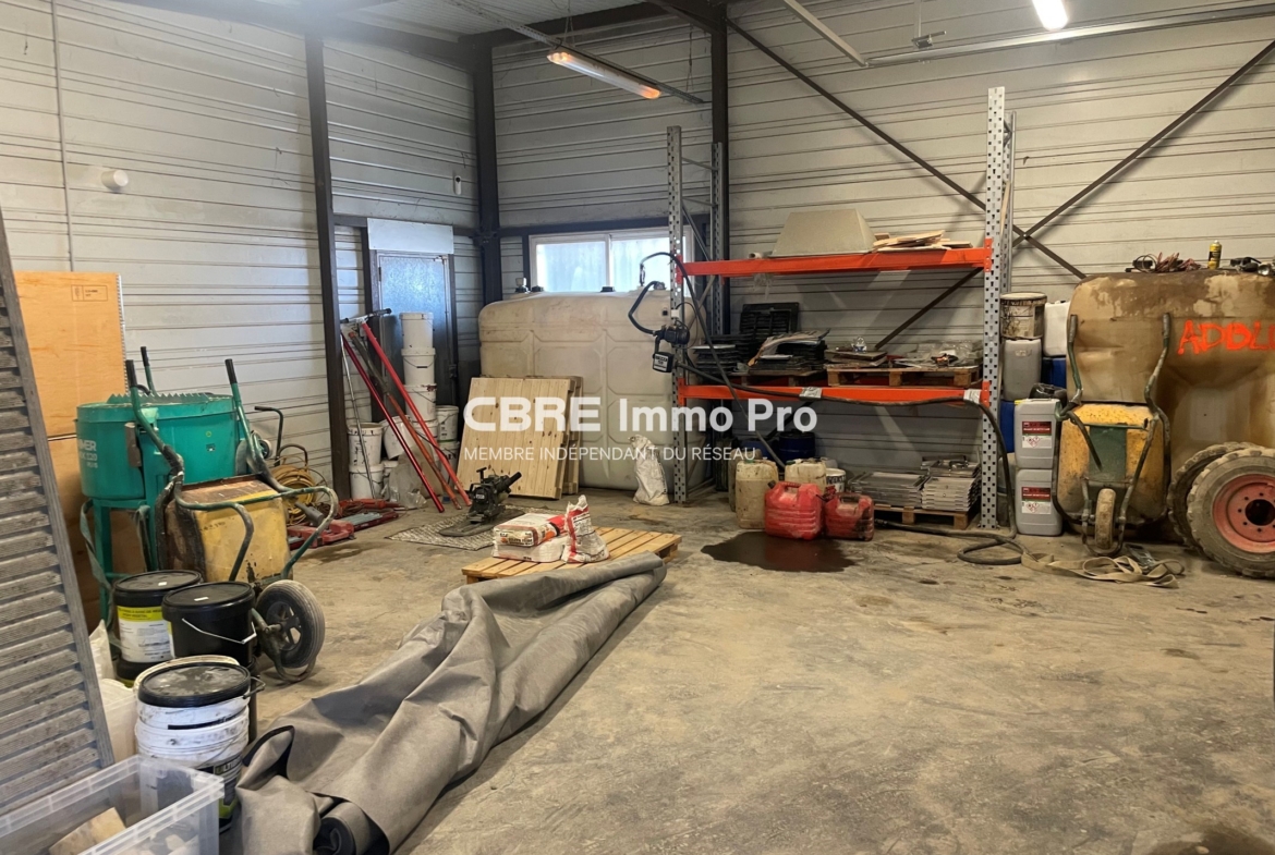 SPECIAL INVESTISSEUR – Découvrez ce site fonctionnel offrant une combinaison idéale, parfaitement adapté à diverses activités. Bâtiment principal comprenant 3 bureaux lumineux et fonctionnels, une salle de pause, sanitaire et salle d’eau ainsi qu’une partie atelier. Pour finir un vaste hangar de 600 m². Le terrain est majoritairement goudronné, assurant une circulation et un stationnement aisés, le reste étant stabilisé en gravier. L’ensemble du site est entièrement grillagé et sécurisé, avec 2 accès distincts via des portails motorisés, optimisant les flux d’entrée et de sortie.